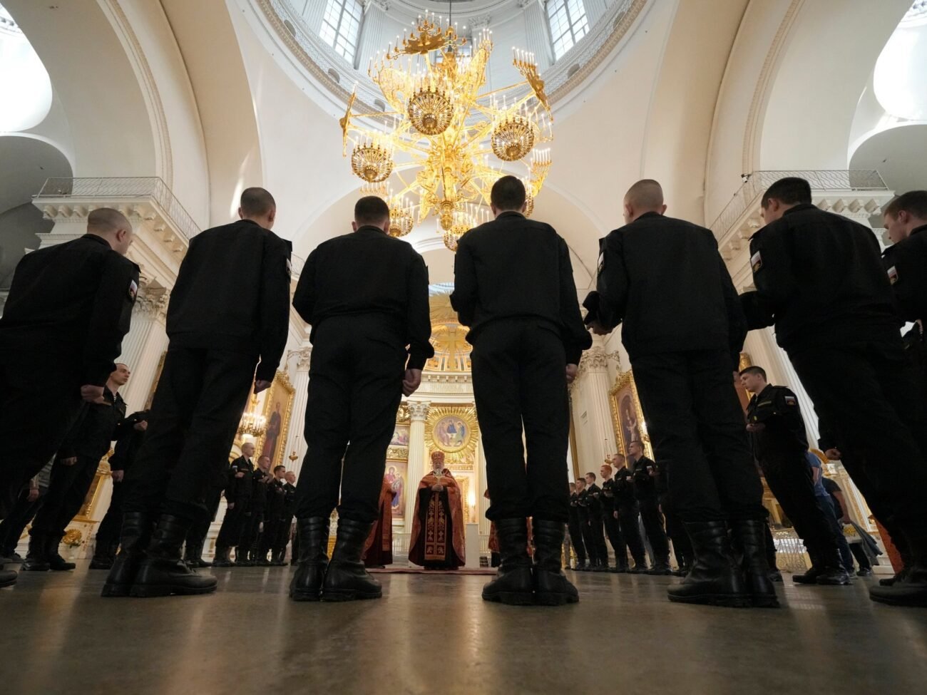 Russian conscripts called up for military service attend a ceremony marking their departure for garrisons from a recruitment centre in Saint Petersburg, Russia, on October 15, 2025 [Anton Vaganov/Reuters]